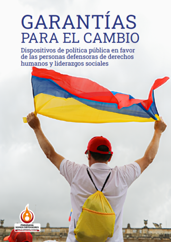 El informe Garantías para el cambio: dispositivos de política pública en favor de las personas defensoras de derechos humanos y liderazgos sociales, elaborado gracias a un trabajo conjunto entre el Comité de Solidaridad con los Presos Políticos (CSPP), Coordinación Colombia Europa Estados Unidos (CCEEU) y el Programa Somos Defensores (PSD) tiene como propósito presentar de manera sintética las principales falencias en la implementación de mecanismos que se consideran pilares en la construcción de una política pública de garantías para el ejercicio de la labor de defensa de los derechos humanos y que fueron consagrados en el Acuerdo de Paz, junto con algunas recomendaciones de largo alcance al Gobierno entrante de Gustavo Petro y Francia Márquez que se consideran fundamentales para encauzar el rumbo de su implementación, avanzar en la superación de las violencias que enfrentan las personas defensoras y liderazgos sociales y la configuración de una política pública de garantías para el ejercicio de la labor de defensa de los derechos humanos.