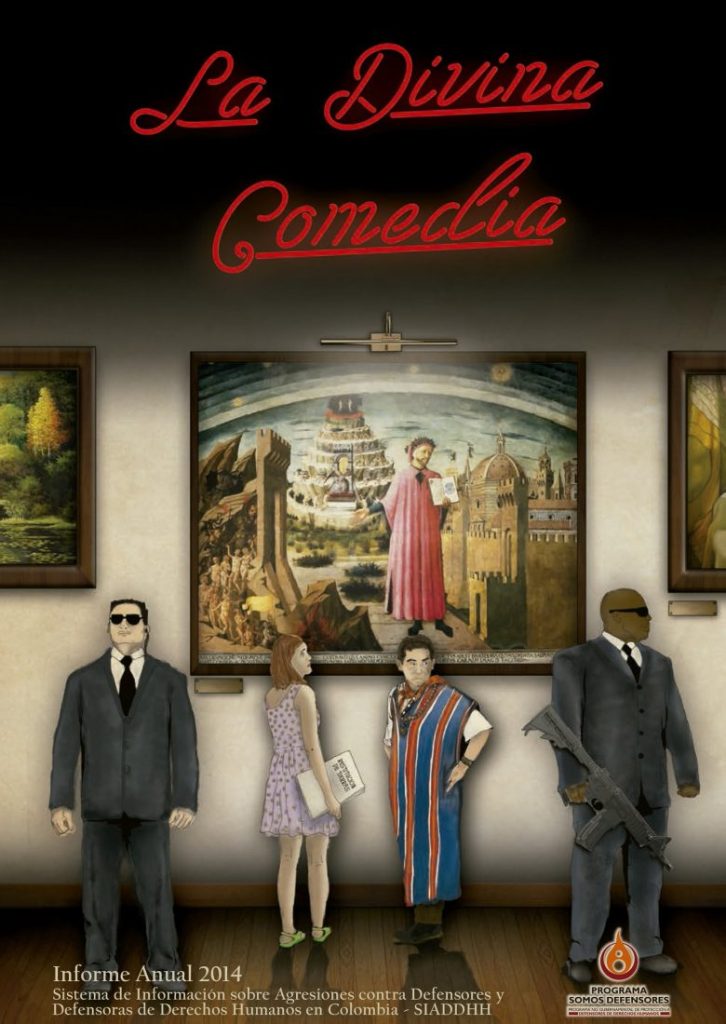 El capítulo 2, El Purgatorio, recoge las cifras de agresiones contra líderes, defensores(as) de derechos humanos durante el 2014.  Como es costumbre, se presentan los perfiles generales de estas personas que entregaron sus vidas en el ejercicio de su labor, como un reconocimiento. También se hace un análisis detallado del tipo de agresión, afectación por género, presuntos autores, regiones más afectadas y demás. Pero dado el crecimiento exponencial del “fenómeno” de amenazas a través de panfletos y vía internet, se hace un análisis pormenorizado de las mismas El capítulo 3, El Paraíso, donde se recogen algunas propuestas que contribuyan a repensarnos cómo mejorar la política existente en materia de protección, luego del recorrido preocupante de los capítulos anteriores. Dada las obligaciones internacionales contraídas por Colombia, en este aparte se recuerdan algunas recomendaciones recientes hechas por la Comisión Interamericana de Derechos Humanos, CIDH, en materia de protección. Por último, las Conclusiones propias de este Informe anual.